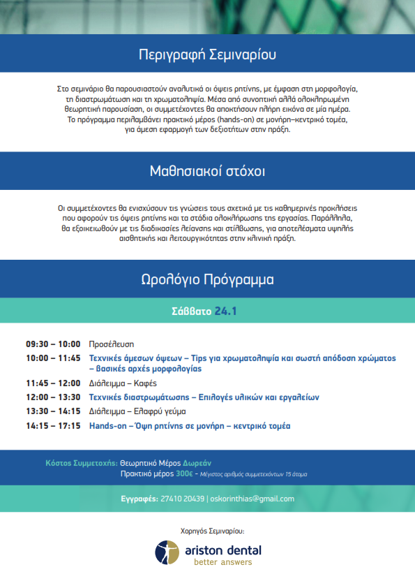 Ο Οδοντιατρικός Σύλλογος Κορινθίας διοργανώνει Ημερίδα με θέμα « ΟΨΕΙΣ ΡΗΤΙΝΗΣ ΣΥΓΧΡΟΝΕΣ ΠΡΟΚΛΗΣΕΙΣ » το ΣΑΒΒΑΤΟ 24.01.2026